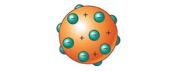 Thomson menganggap atom selain terdapat elektron juga terdaoat muatan positif, sehingga teorinya menyatakan atom sebagai suatu bola pejal bermuatan positif dan di permukaannya terdapat elektron-elektron atau lebih dikenal dengan model kue kismis.